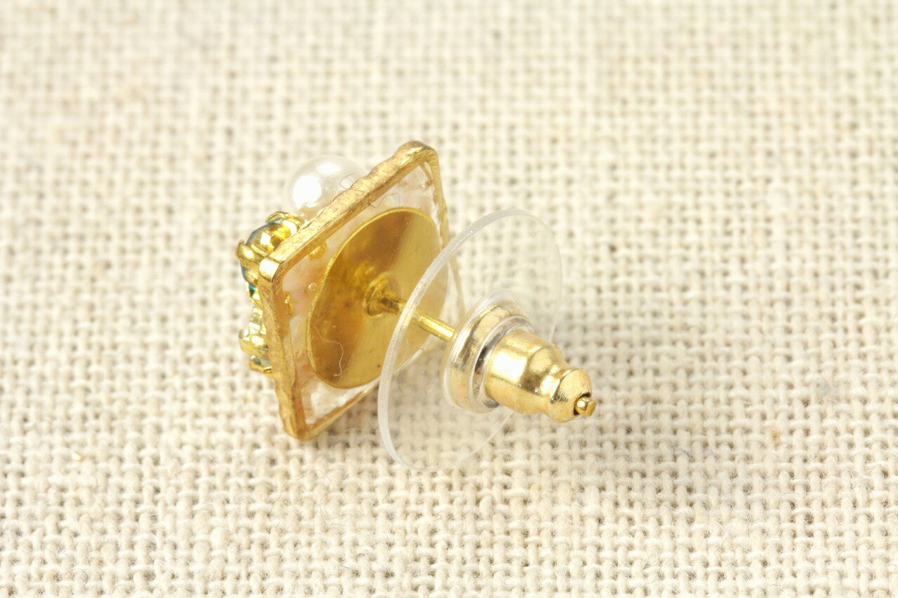 大き目のアクセサリーパーツや沢山付いたビジューだと重さでピアスポストが下を向いてしまいます。