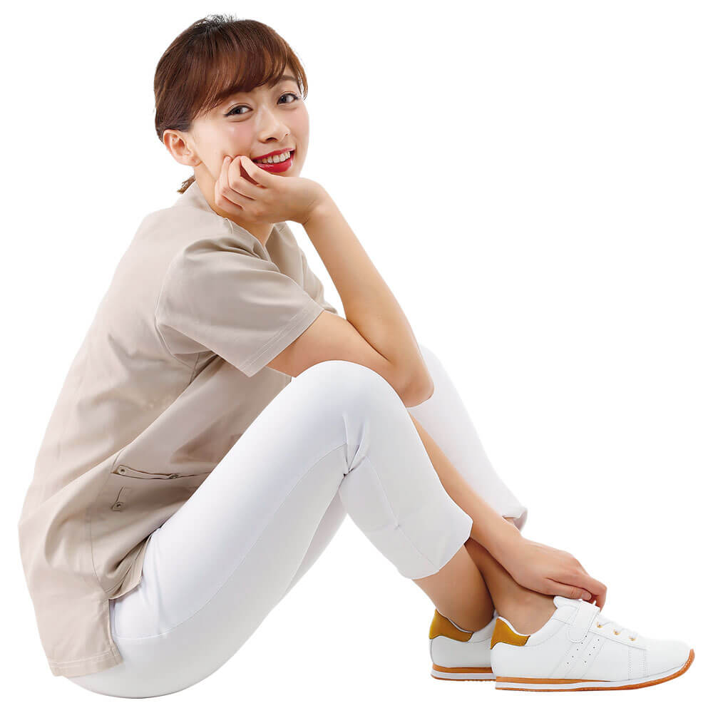 レトロなデザインがシンプルで可愛いナースシューズ落ち着いた雰囲気にもカジュアルにも合う、スエード調のナースシューズです。