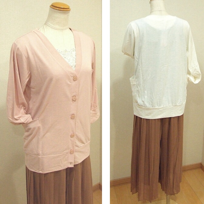 【アウトレット商品】 【汚れ・ほつれ・小さな穴あき等ございます(返品不可)】 大きさ 【Mフリー】胸囲約92(46*2)cm 着丈約63cm 肩幅約38cm 袖丈(七分袖42cm・長袖63cm) ※サイズの詳細はこちらから 素材 ポリエステル65%、レーヨン35% 裏地 ありません。