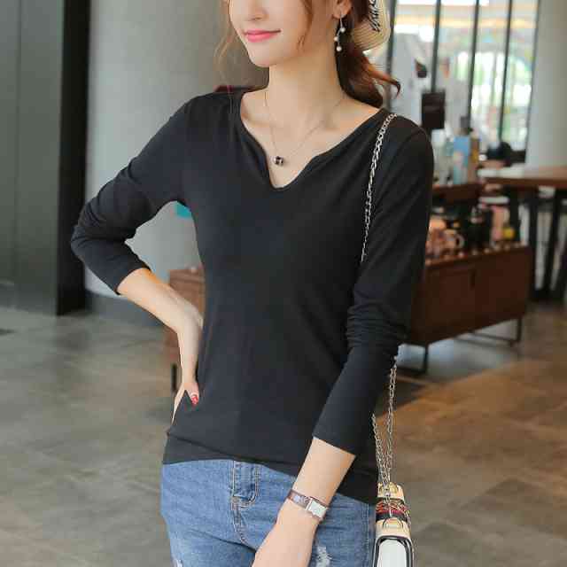 トップス レディース 春 夏 秋 カットソー ロンT 長袖 Tシャツ カジュアル 新作 ロング丈 体型カバー 袖あり 痩せて見える 大人可愛い ナチュラル 上品 綺麗 キレイめ 10代 20代 30代 40代 50代 ベーシック 襟付き Vネック