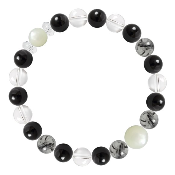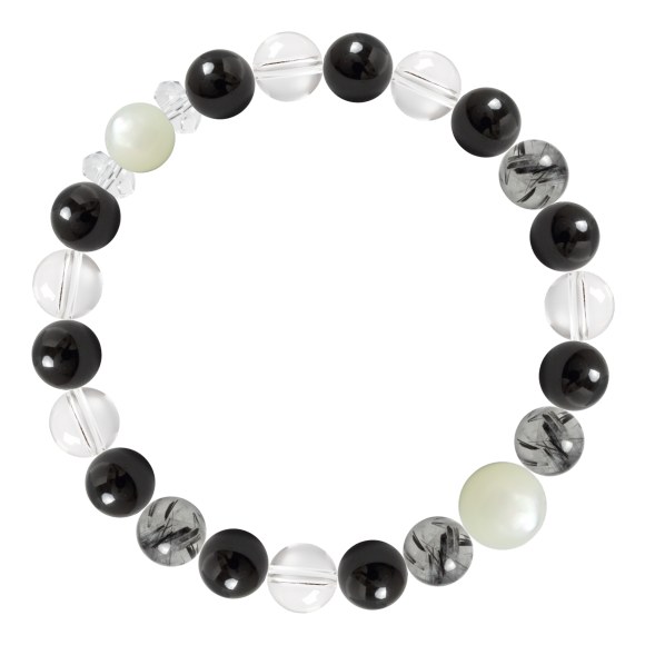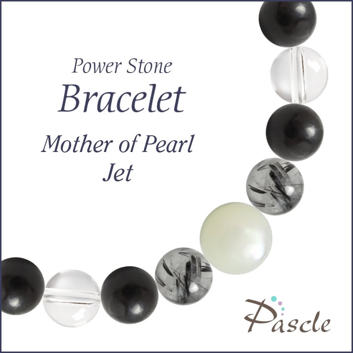 パワーストーン ブレスレット メンズ マザーオブパール・ジェット 天然石 安産・子宝 癒し(リラックス) 魔除け・厄除け 願望成就(目標達成) 誕生日 プレゼント