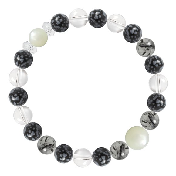 パワーストーン ブレスレット メンズ マザーオブパール・スノーフレークオブシディアン 天然石 安産・子宝 癒し(リラックス) 仕事運 魔除け・厄除け 誕生日 プレゼント