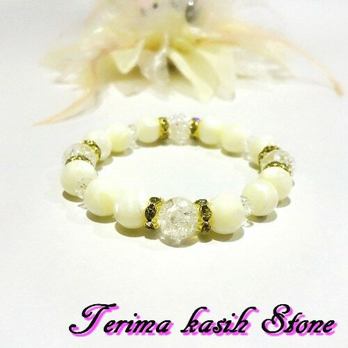 ホワイトマザーオブパール クラック水晶 優しさ 慈母 包容力 厄除け 物事の成功 ★ミルク/天然石パワーストーンブレスレット【5000円以上購入時は宅配便でも送料無料!】【小さいサイズ〜大きいサイズまで!】ゆうメールなら送料無料